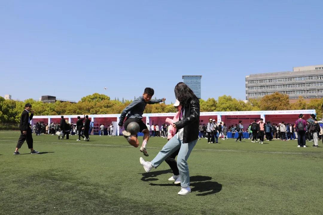 的老师、同学们耐心地为前来咨询的同学们解答问题,还有一些同学们参与了颠球小游戏,赢取了奖品。