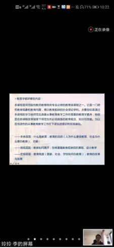 李玲玲老师通过zoom平台讲授《教育学》课程