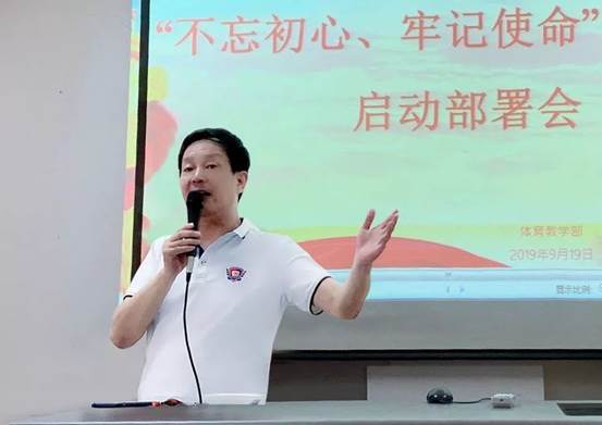 2019年9月19日,体育教学部党委“不忘初心,牢记使命”主题教育动员大会在南校区多媒体教室顺利举行。第六巡回指导组组长黄雨,体育教学部党委书记季忠荣,cos色情