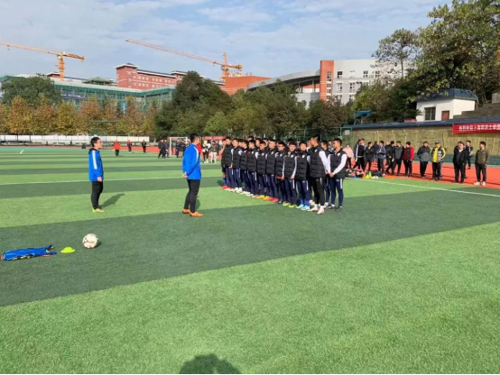 研究生魏晨阳、袁佳良带教遵义市一中校足球队训练示范课