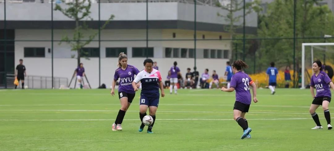 上海纽约大学队员有许多外国友人,她们身体强壮,但我方球员毫不畏惧,整体以守为攻。