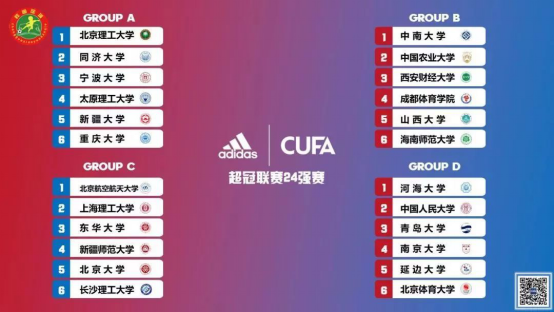与北京理工大学、宁波大学、太原理工大学、新疆大学、重庆大学同组。具体抽签结果如下: