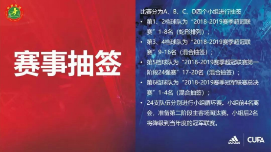 CUFA超冠联赛24强赛将于2019年12月28日-2020年1月5日进行,比赛地点为云南省红河州泸西县高原足球训练基地。每组6支球队将进行小组循环赛,小组前4名进入第二阶段主客场淘汰赛,小组后2名将降级到当年度的冠军联赛。