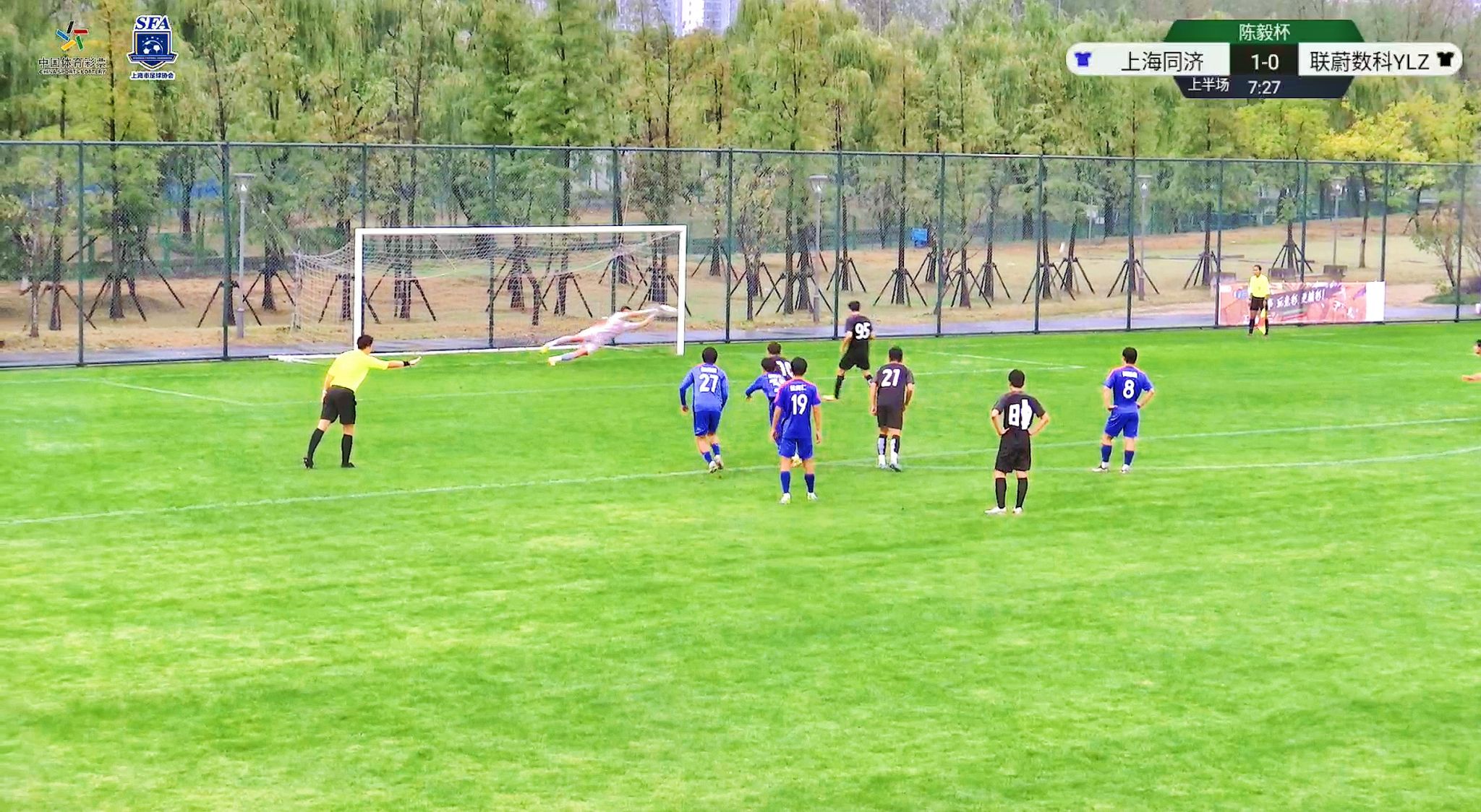 第9分钟,4号左边后卫古瑞枫禁区内犯规,对方球队获得点球,23号门将李海涛奋勇扑出点球力保球门不失。