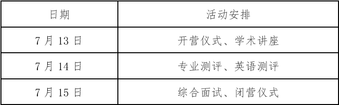 组织专家组,根据申请人专业背景、学业成绩综合素质等材料以及报考研究方向、招生规模等进行审核。最终入选名单将于6月21日前在系统上公布。未接到通知的同学皆视为未入选者,不另行通知。本次夏令营计划招收营员人数约30-40人。