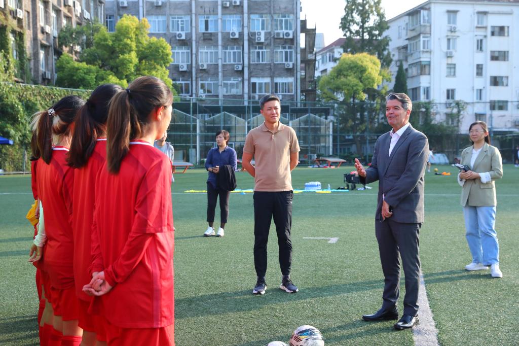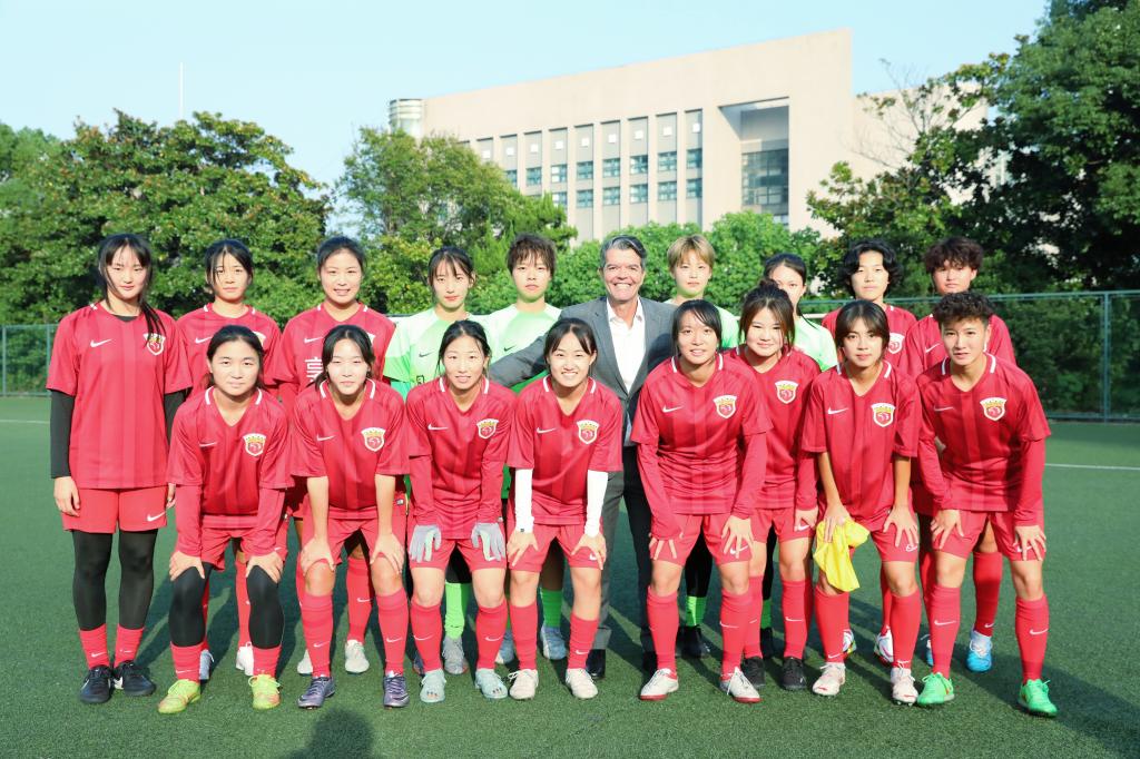 随后沈寅豪副院长又带领希门内斯一行参观了校内的足球训练场地,并观看了同济海港女足球员的训练,最后合影留念结束这愉快的访问行程。