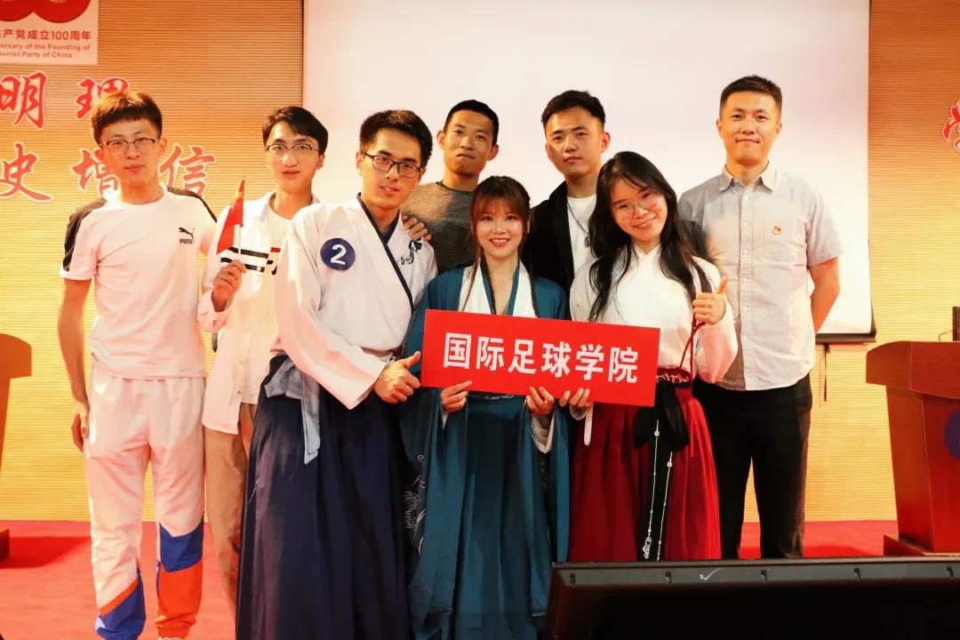 第一阶段,包括必答题、抢答题和选答题。足球学院代表队凭借扎实的党史知识基础和敏捷的手速顺利进入前六名。