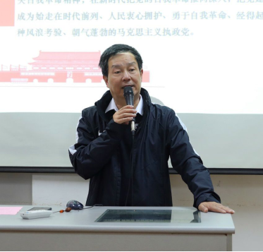体育教学部党委书记季忠荣在讲党课